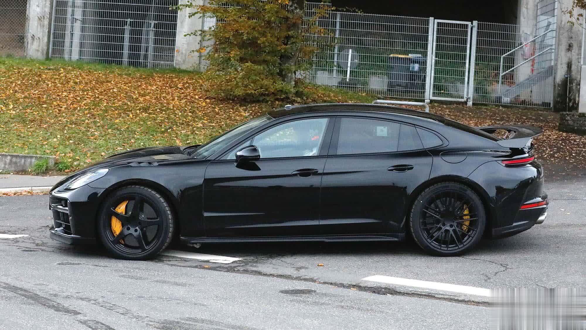 在内饰方面,一切都指向日常实用性与GT风格的结合。前排座椅后方设有防滚架,而后排座椅依然保留。因此,Panamera依旧是一款真正的四座车型——但其整体取向明显更加偏向驾驶动态表现。桶形座椅、GT风格方向盘,以及Alcantara或可见碳纤维材质,都极有可能出现在配置清单中。